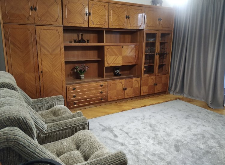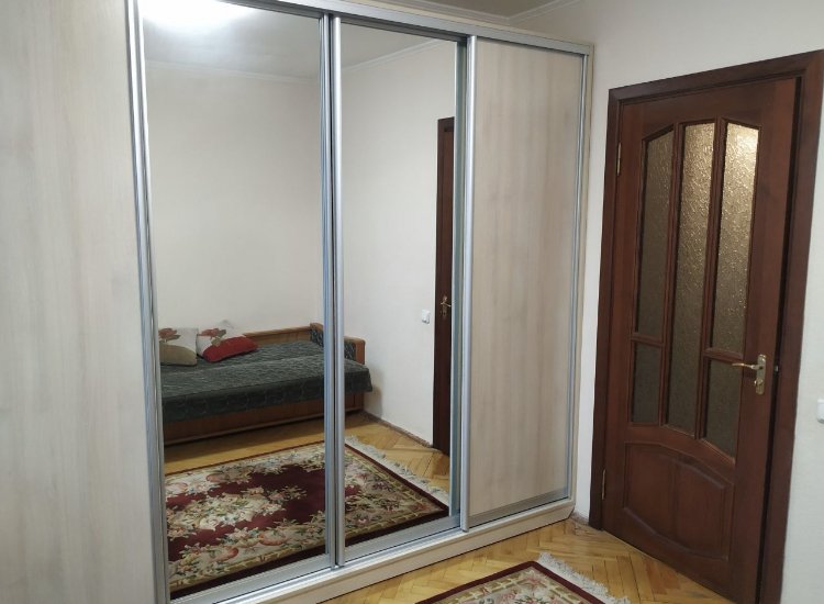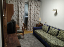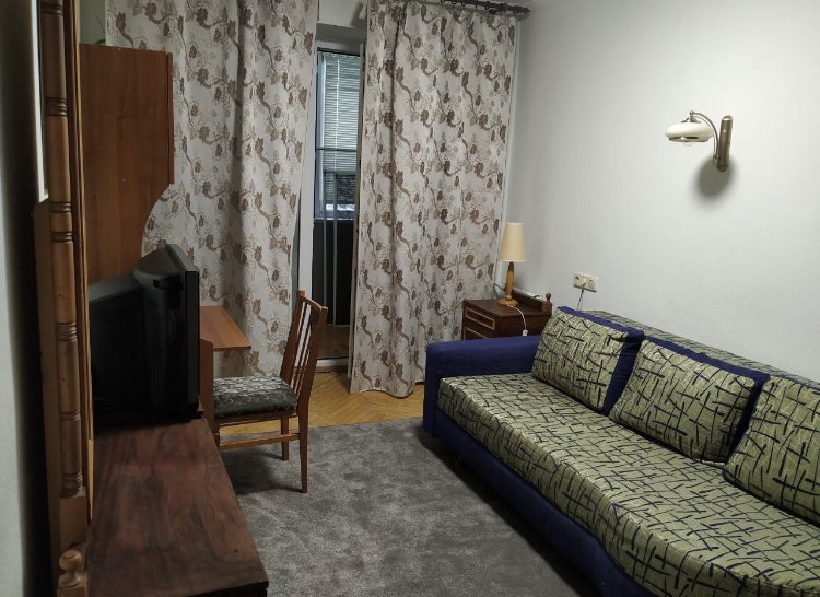 Комнаты все раздельные. В первой комнате 2 спальный диван, шкаф, телевизор, стол.